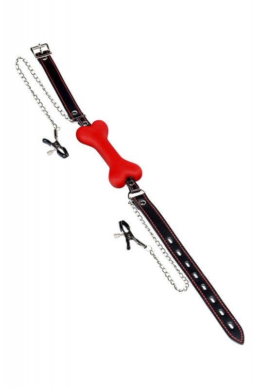 Трензель-кость с зажимами на соски "Theatre" красный