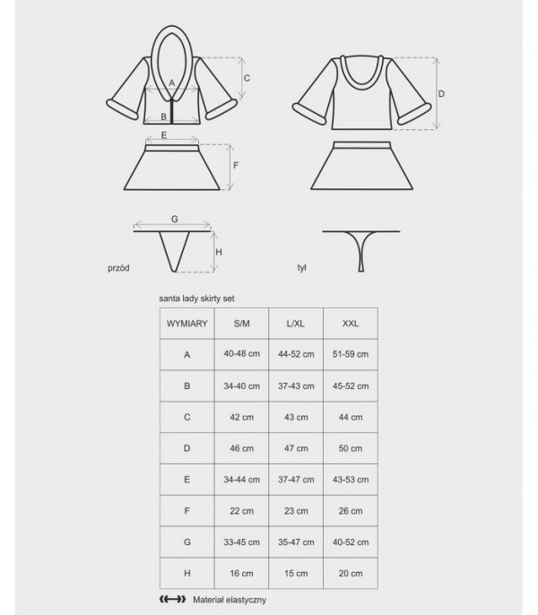 Костюм Снегурочки "Obsessive Santa Lady" топ с капюшоном и юбочка, XXL
